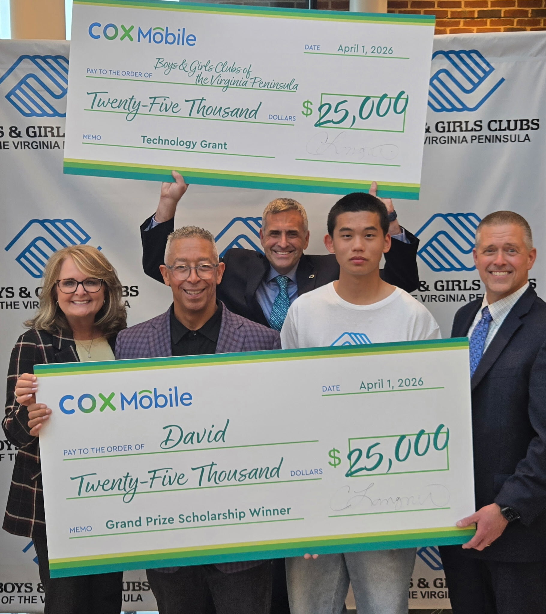 David from Boys & Girls Clubs of the Virginia Peninsula has been named the 2026 Grand Prize Winner. He was selected by a panel of judges from Cox Communications and Boys & Girls Clubs of America, including 2025-2026 National Youth of the Year Ximena and alumnus Mario Lopez.